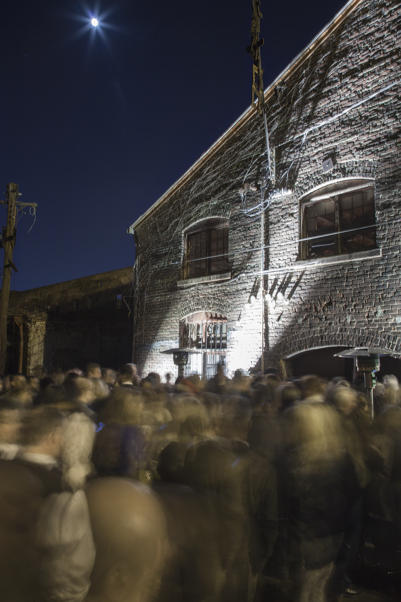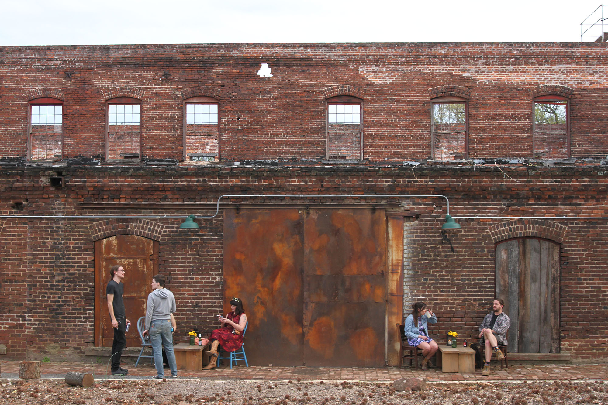 Photo 6: Concert performance by Black Lips @ Interior of Goodson Yard Building, Photo by Octawian OtlewskiPhoto 7: Production staff relaxing after a long day of install before the start of an event in front of Building 5, Photo by Arno Hunter Myers